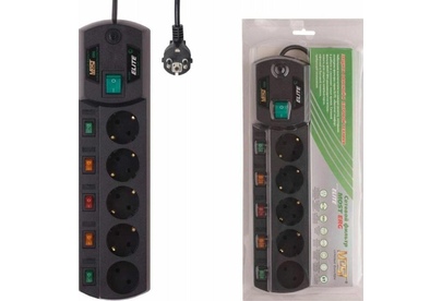 Входная вилка, тип: EURO. Длина шнура: 5. Индивидуальные выключатели розеток: есть. Максимальный ток нагрузки: 10. Максимальная нагрузка: 2200. Номинальная мощность: 2200. Номинальное напряжение питающей сети: 220. Частота сети: 50. Максимальный импульсный ток помехи: 12000. Подавление импульсных помех: да. Подавление высокочастотных помех: да. Максимальная рассеиваемая энергия: 350. Защита от короткого замыкания: есть. Количество выходных розеток: 5. Габариты упаковки (ед) ДхШхВ: 0.13x0.07x0.455. Вес упаковки (ед): 0.82. Гарантия: 36 мес.. Цвет: черный. Количество выходных розеток: 5. Номинальная мощность: 2200 ВA. Максимальная нагрузка: 2200 Вт. Входная вилка: EURO. Длина шнура: 5 м. Особенности: индивидуальные выключатели розеток