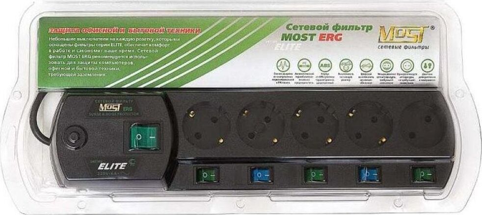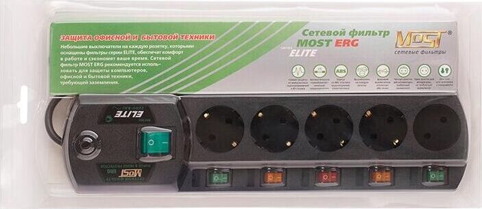 MOST Сетевой фильтр ERG, 5м, черный [моsт еrg-ч 5м]