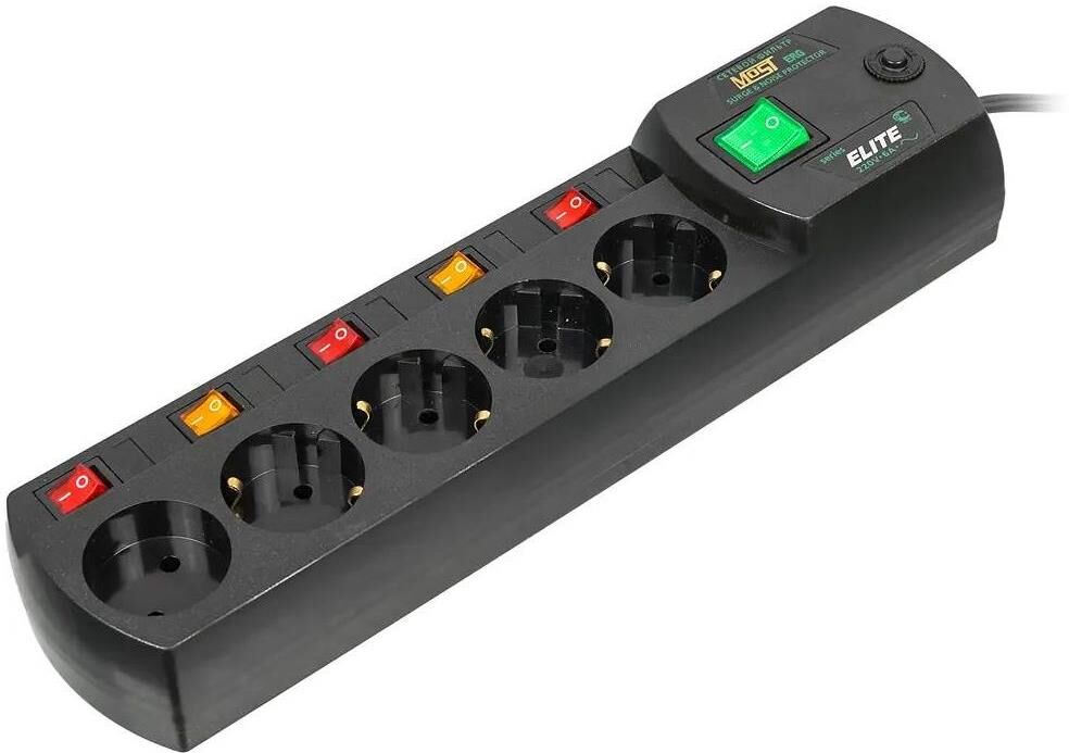 MOST Сетевой фильтр ERG 2м (5 розеток) черный (коробка)