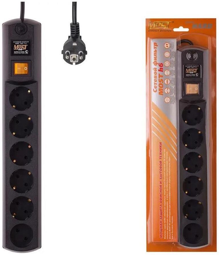 MOST Сетевой фильтр H6 2м (6 розеток) черный (коробка)
