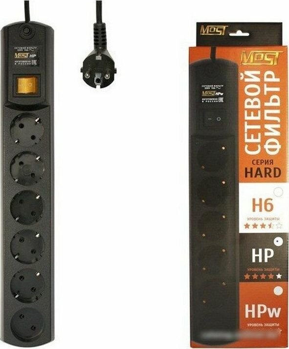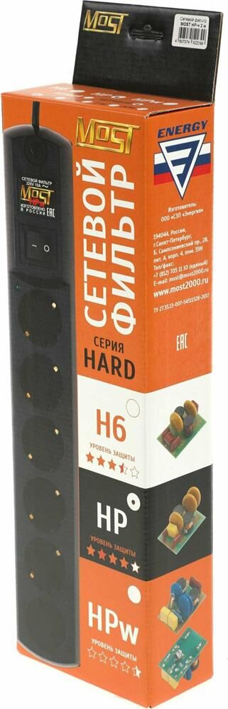 MOST Сетевой фильтр HP 2м (6 розеток) черный (коробка)