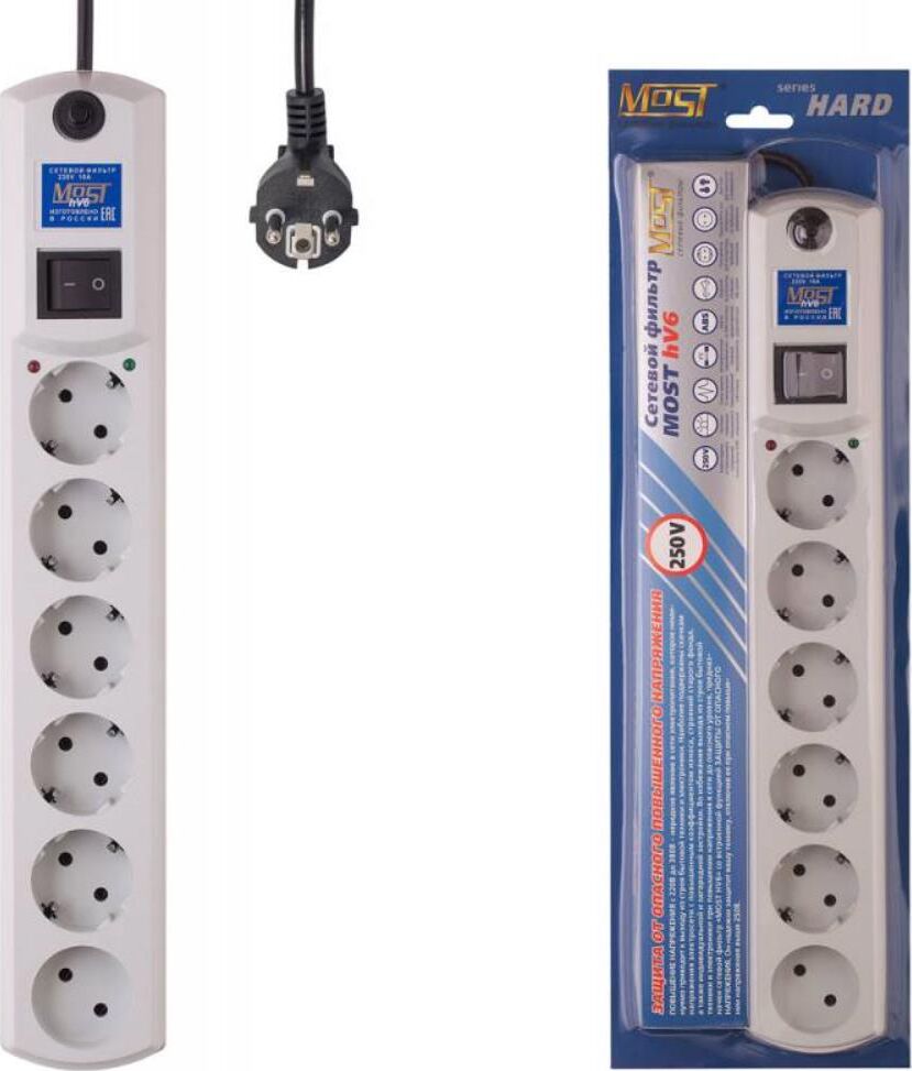 MOST Сетевой фильтр HV6 5м (6 розеток) белый (коробка)