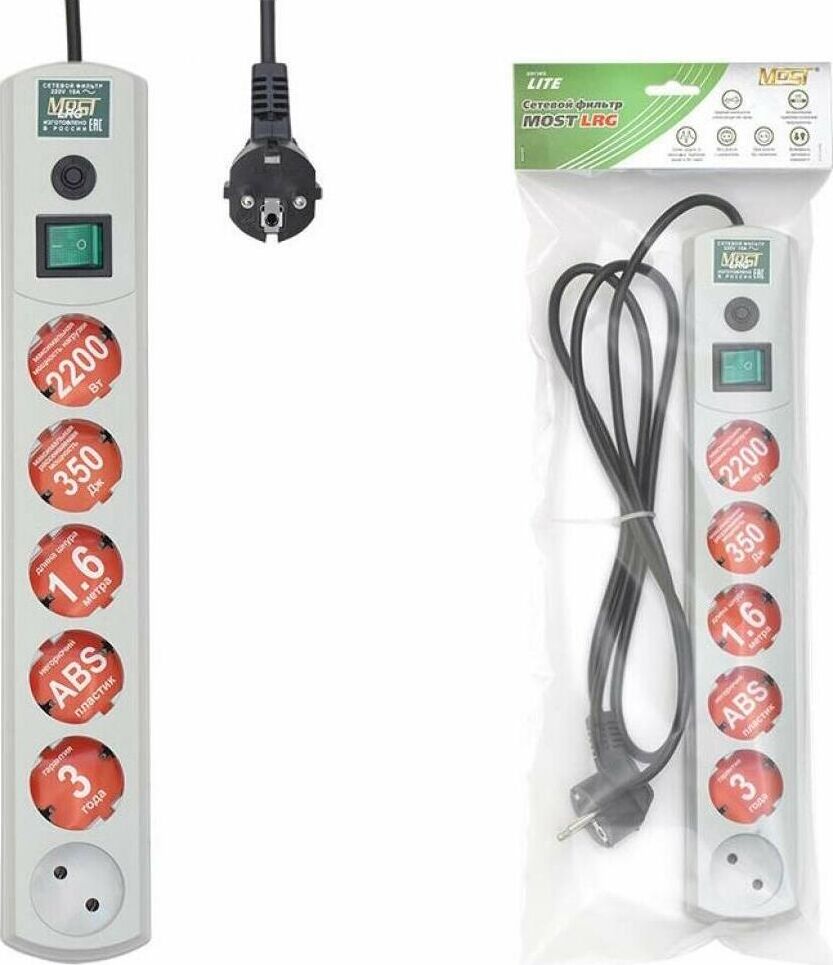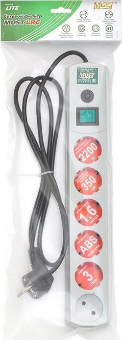 MOST Сетевой фильтр LRG 1.6м (6 розеток) белый (пакет ПЭ)