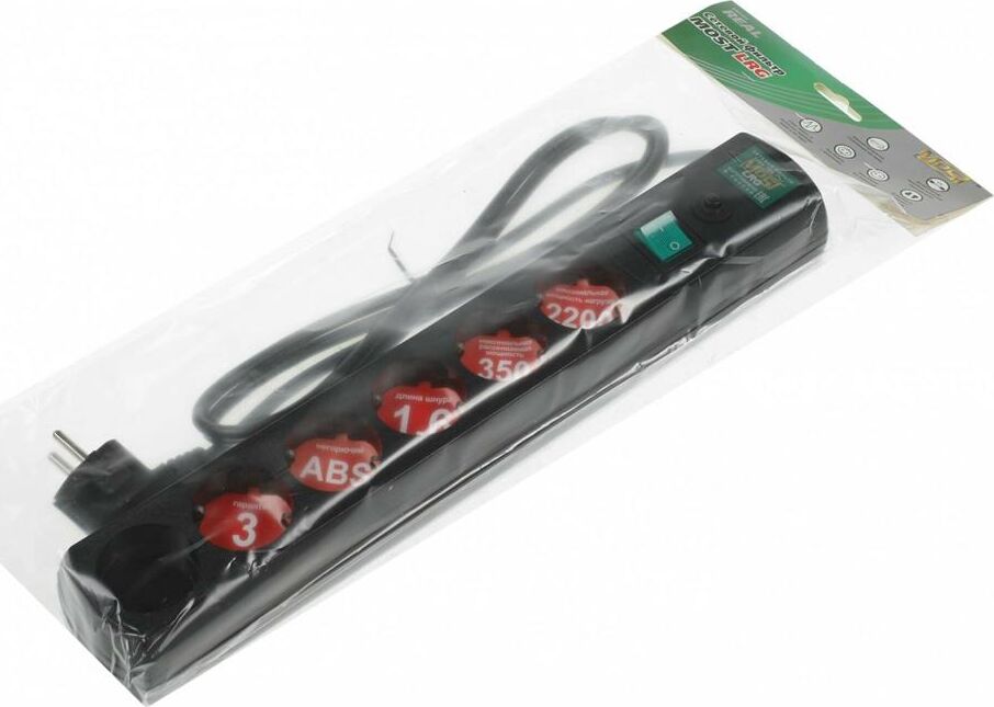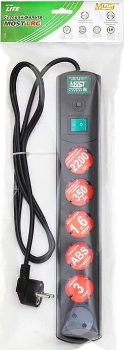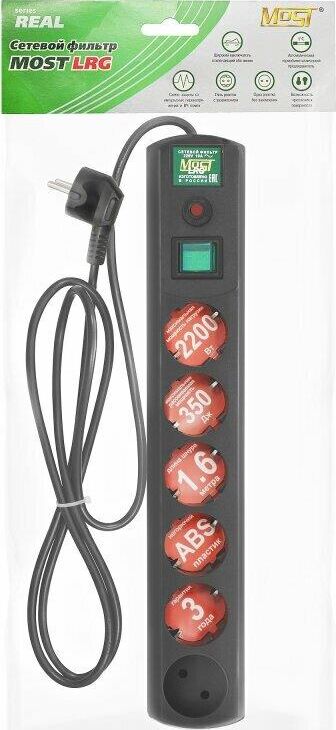 MOST Сетевой фильтр LRG 1.6м (6 розеток) черный (пакет ПЭ)