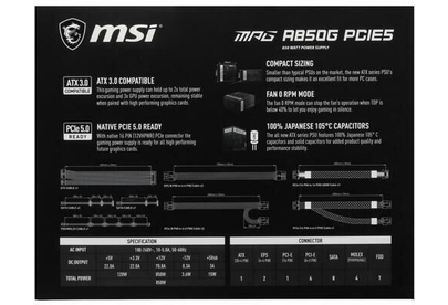 MSI Блок питания ATX 850W MPG A850G 80+ gold 24pin APFC 135mm fan 8xSATA Cab Manag RTL
