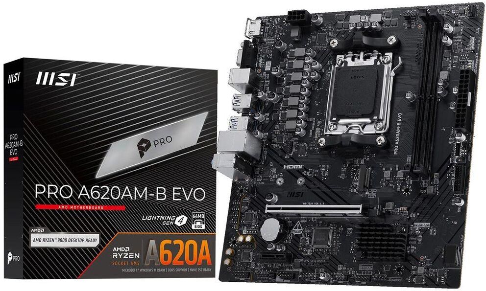 MSI Материнская плата PRO A620AM-B EVO A620, AM5, 2*DDR5, 1*PCIEx16, 1*PCIEx1, 1*M.2, 1*TypeC, 6*USB