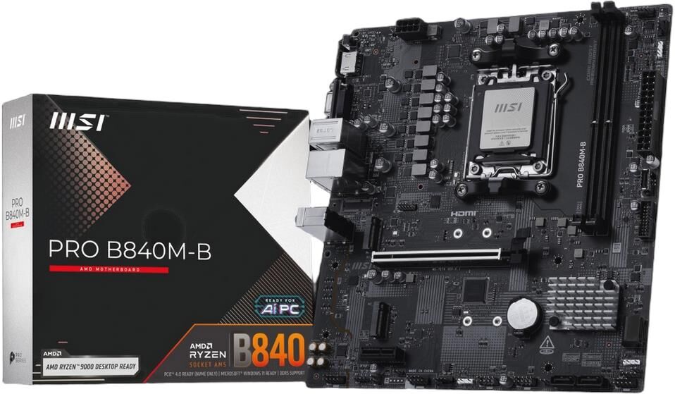 MSI Материнская плата PRO B840M-B B840, AM5, 2*DDR5, 1*PCIEx16, 1*PCIEx1, 2*M.2, 1*TypeC, 6*USB3.2Ge