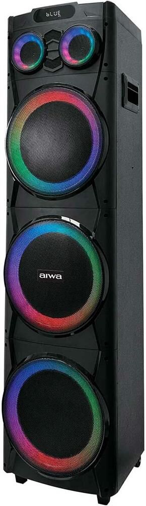 Акустическая система с Bluetooth, FM радио, и TWS. Выходная мощность: (RMS) 100Вт Настраиваемая светодиодная подсветка. Частотный диапазон: 40Гц-20КГц. Диапазон частот FM тюнера: 87,5 - 108МГц. Размеры динамиков - низкочастотный динамик 10"*3, твитер -3"*2шт. Bluetooth V5.0. Воспроизведение музыки с носителей памяти - USB, TF card Вход: USB, вход для микрофона, вход для гитары, AUX, TF card. Регулировка громкости микрофона, уровня эхо. Функция регулировки эквалайзера. Функция TWS Светодиодный дисплей. Встроенная аккумуляторная батарея 12В, 7000 мAч. Внешнее питание: AC 110-220В. Корпус: МДФ + ABS пластик. Дистанционный пульт управления. Размеры изделия, мм - 340*305*1330. Вес:20.7 Кг.