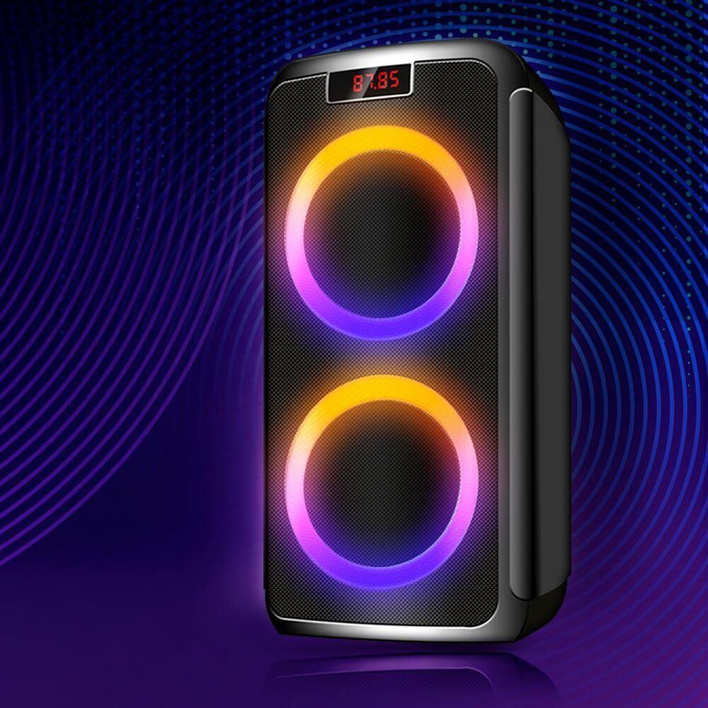 ДИНАМИКИ: НЧ/СЧ - 2 х 8 дюймов, ВЧ - 1 х 2 дюйма. MEGABASS - функция увеличения низких частот. КАРАОКЕ функция - два микрофона. ДИНАМИЧЕСКАЯ RGB подсветка динамиков - 3 режима. ЭКВАЛАЙЗЕР: 5-ти полосный. Аккумулятор 12V /4500 мАч и питание от сети 220V. FM РАДИО: 87,5-108,0 МГц. АУДИО-ПЛЕЕР: USB-flash и микро SD-card. AUX: DC-jack 3,5 мм. Пульт дистанционного управления. Диапазон воспроизводимых частот - 40 Hz - 20 kHz.