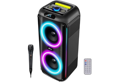 Аудиосистема, 6,5” + 6,5” + 1,5'' твиттер, Bluetooth, FM-радио, RGB-подсветка, AUX, USB, microSD (до 32 Гб, MP3), дисплей: LED, до 6 часов, вход: Jack 6.3 мм, Jack 3.5 мм, USB, 3600 мАч, 3.7 В, USB Type-C, 5В, 55,6 x 23 x 24 см, пластик, черный