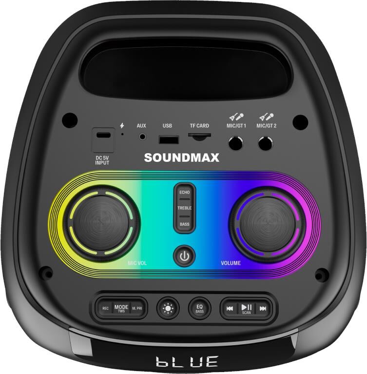 Мощность 120 Вт Максимальная выходная мощность 200 Вт Частотный диапазон 20 Гц - 20 кГц Количество и размеры динамиков 2 х 6.5" + 1.5" Эквалайзер есть Поддерживаемые аудиоформаты MP3, WAV Bluetooth 5.1 Радио Диапазон FM 87.5 - 108 Аудиовход есть Вход для микрофона есть Вход для гитары есть Разъём USB есть Слот для microSD карты есть Громкая связь/Hands-free Нет Голосовой помощник Нет Функция True Wireless Stereo есть Дисплей есть Отключение подсветки есть LED подсветка есть Аккумуляторная батарея (тип, ёмкость, напряжение) Li-ion 8800 мАч, 7.4 В Время работы от аккумулятора До 20 часов Тип разъёма питания USB Type C Комплектация Кабель USB, пульт дистанционного управления, руководство по эксплуатации Цвет Чёрный Габариты устройства (Ш х В х Г) 580 х 260 х 260 мм Вес 4.58 кг