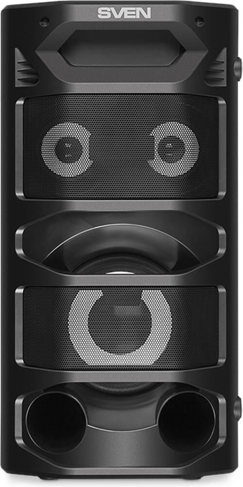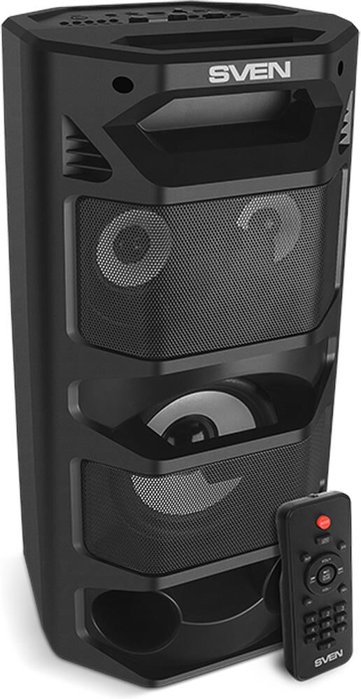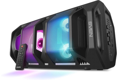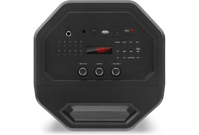 Артикул № 895937 Многофункциональная портативная акустическая система с подсветкой. Эффектная разноцветная подсветка Беспроводная передача сигнала по Bluetooth Беспроводное соединение двух колонок к одному источнику Микрофонный вход с функцией эхо Воспроизведение музыки с USB flash и microSD card памяти LED-дисплей Встроенный эквалайзер Встроенное FM-радио Возможность проводного подключения к источнику звука Пульт ДУ
