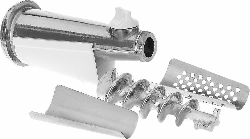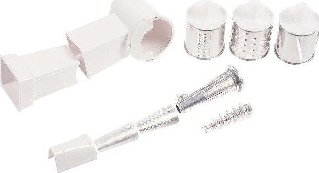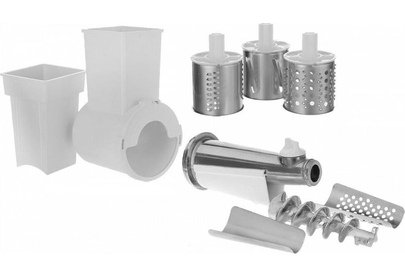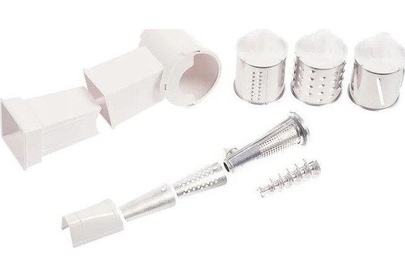 Комплект приставок АМ 11.02. Комплект приставок АМ 11.02 к электромясорубкам (ко всем моделям кроме М61, М62, М641, М642). Состоит из: приставка-соковыжималка АМ11.04, приставка-овощерезка АМ11.03-04 (4 барабана). Цвет белый, оранжевый