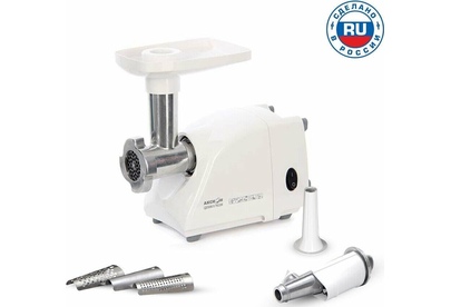 Габаритные размеры (ШxВxГ) 25,6/15,25/ 18,25 см * Производительность 0,5 кг/мин * Мощность 600 Вт * Вес 3,3 кг * Цвет Белый * Защита двигателя от перегрузки; Экономия электроэнергии без ущерба качеству; Отсек для хранения шнура питания; 2 вида решеток для получения фарша разной консистенции - с диаметром отверстий 4,9 мм и 7 мм; Высокое размещение шнековой камеры; Устойчивые нескользящие ножки для фиксации мясорубки на поверхности стола;