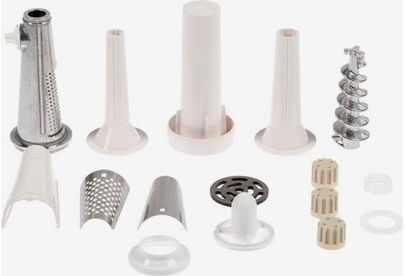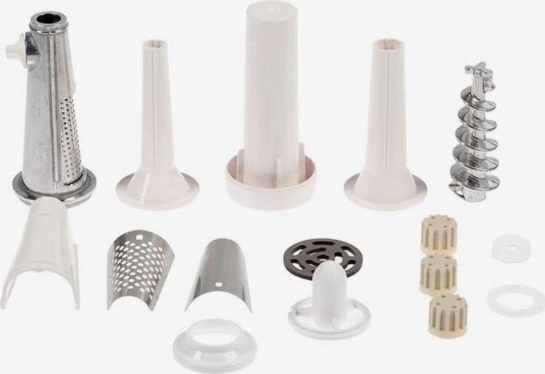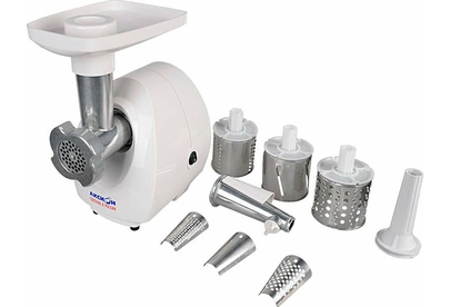 максимальная мощность 1500 Вт, номинальная мощность 230 Вт, производительность — 50 кг/час, Насадки насадка для приготовления колбас, диск для фарша Диск для фарша 2 в комплекте, диаметр отверстий 4.9 мм Соковыжималка шнековая Материал лотка пластик Материал корпуса пластик Можно мыть в посудомоечной машине Прорезиненные ножки Вес 3,5 кг Цвет белый