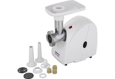 максимальная мощность 1500 Вт, номинальная мощность 230 Вт, производительность — до 100 кг/час, масса — 4 кг, функция РЕВЕРС, отсек для хранения решеток и сетевого шнура, решетка с отверстиями д. 5 мм, решетка с отверстиями д. 7 мм, Отключение при перегреве Материал корпуса пластик Вес 3,6кг Цвет пластик