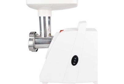 Мощность 1500 Вт * Производительность 1,66 кг/мин * Размеры 0,29 х 0,19 х 0,27 * Вес 3,8 кг * Высокопроизводительная, мощная мясорубка имеющая функцию реверс, позволяющую кратковременно поворачивать шнек в обратном направлении. • функция реверс поможет избавиться от намотавшихся на шнек и пленок • три решетки с отверстиями различного размера, входящие в комплект поставки, позволяют получить фарш различной консистенции. Решетка с отверстиями овальной формы поможет приготовить холодец и нарезать на мелкие кусочки мясо или овощи