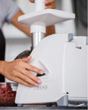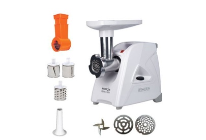 Номинальная потребляемая мощность 230 Вт * Производительность 1,7 кг/мин * Реверс * Мощность 1500 Вт * Двойная защита от перегрузки; Функция «реверс» для предотвращения наматывания жилок на шнек; Отсек в корпусе для шнура питания, хранения ножа и насадок; 3 вида решеток для получения фарша разной консистенции - с диаметром отверстий 3,5 мм и 7 мм, а также овальными отверстиями; Экран для защиты от брызг, который поможет сохранить кухню в чистоте; Высокое размещение шнековой камеры; Возможность вертикального хранения для экономии пространства на кухне; Ручка для переноски; Устойчивые нескользящие ножки для фиксации мясорубки на поверхности стола;