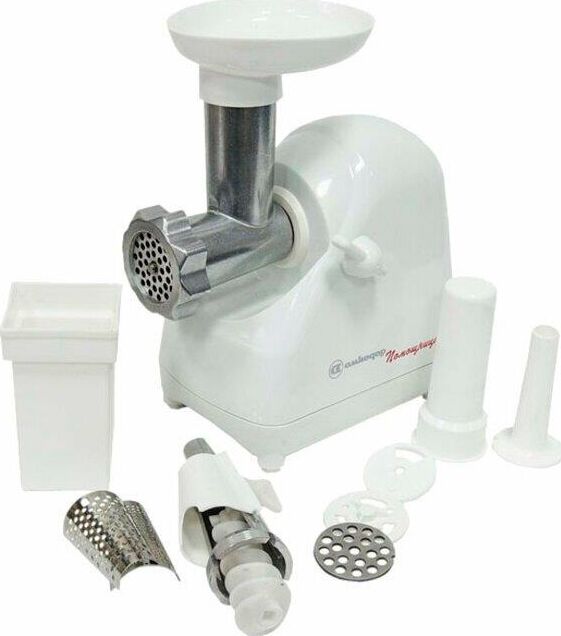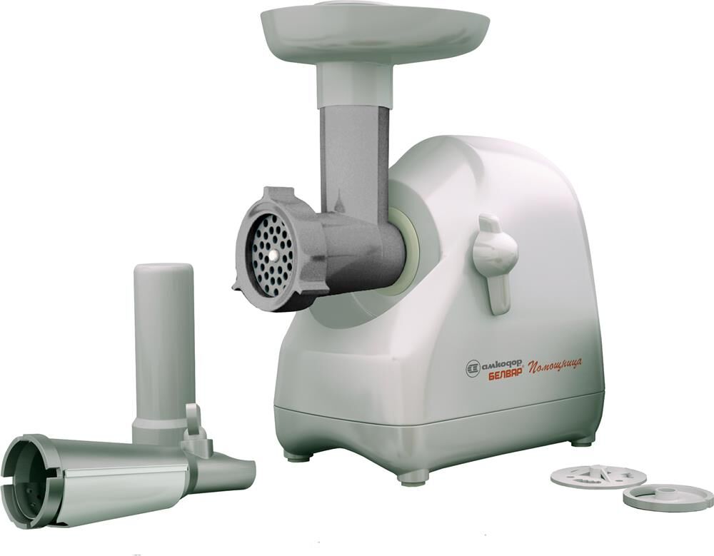 Мясорубка Белвар Помощница КЭМ-П2У 302-10, максимальная мощность 1500 Вт, номинальная от 220 Вт, соковыжималка, реверс, насадка для теста, насадка для колбас, 2 смен. решетки.