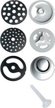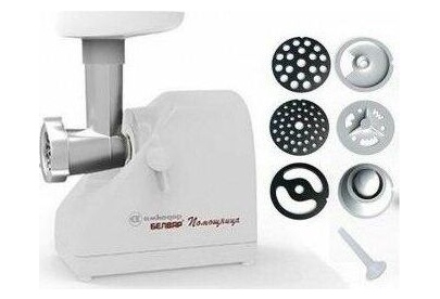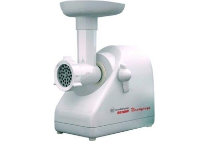 Электромясорубка. Пиковая мощность: 300Вт Номинальная мощность: 1800Вт Реверс: есть Цвет: белый. Количество сменных решеток 2 (крупная, мелкая) . Насадка для набивки колбас. Насадки для профилирования теста. Решетка для "бефстроганов".