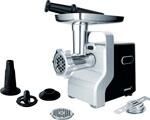 Характеристики: Надежный двигатель мощностью 1600 Вт. Металлический шестерни Нож из высококачественной нержавеющей стали 2 перфорированных диска (5 мм, 8 мм) Широкая горловина для пополнения ( 6,6 см) 2 уровня мощности Режим реверса Насадки для колбасы Насадка для песочного печенья Практичная ручка для переноски Материал корпуса: Металл/Пластик Цвет корпуса: Серебро Габариты прибора (ШхВхГ): 35х32х16,5 Масса, нетто (кг): 3,9 Напряжение (В): 220-240 Мощность (Вт): 1600