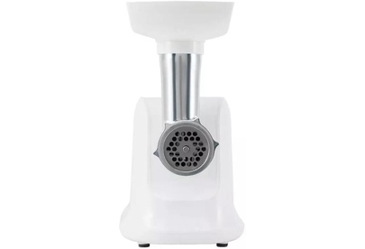 Мощность 1800 Вт, функция РЕВЕРС, 3 решетки с отверстиями разного диаметра (3/5/7 мм), решетки и нож из высококач. нерж. стали, удобный толкатель, насадка для приготовления домашней колбасы, насадки "КеББЕ", материал корпуса пластик, материал лотка - пластик.