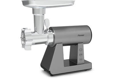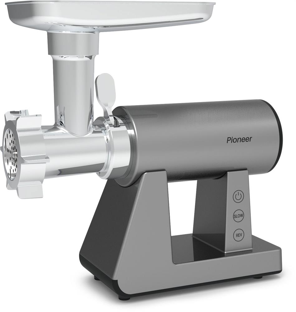 Профессиональная электрическая мясорубка, Максимальная мощность 2700 Вт, Электродвигатель постоянного тока, DC, Высокая производительность до 2.7 кг. мяса в минуту, Сенсорное управление, Металлическое соединение шнека с редуктором, 2 скорости работы для эффективной обработки разных продуктов, Функция реверса, Нож из высококачественной стали, 3 решетки из высококачественной стали в комплекте: 4 мм, 7 мм, подрезная, Насадки для формирования колбасок разного размера 14\20\22 мм и кеббе Профессиональный алюминиевый замок головки мясорубки, (Легкое снятие шнекового блока) Толкатель для продуктов, Металлический лоток, Пластиковый корпус, Противоскользящие резиновые ножки-присоски, Двойная защита двигателя, Длина шнура 1 м