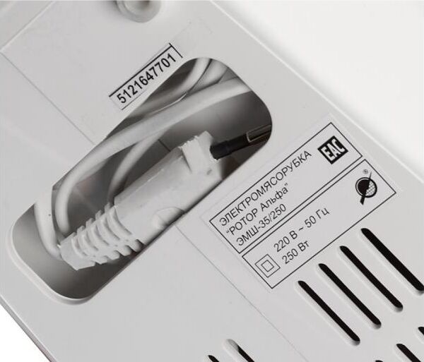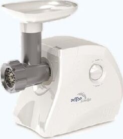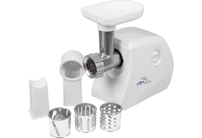 Мощность 1500Вт. Тип мясорубки шнековый. Производ-ть при пригот-и фарша не менее 35 кг/ч. Габариты: 245х151х213 мм.