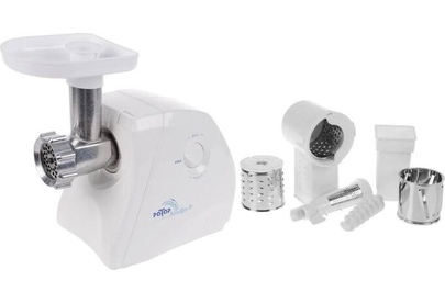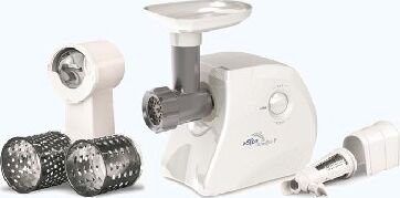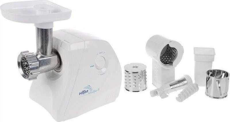 Мощность 1500Вт. Тип мясорубки шнековый. Производ-ть при пригот-и фарша не менее 35 кг/ч. Габариты: 245х151х213 мм. Комплектация: мясорубка + соковыжималка, малая овощерезка. РЕВЕРС.