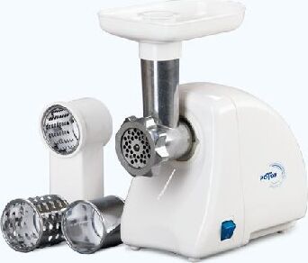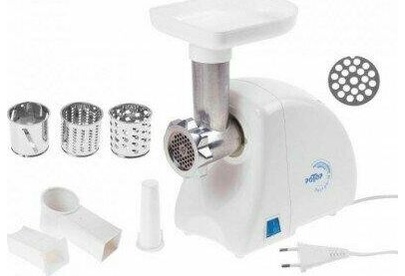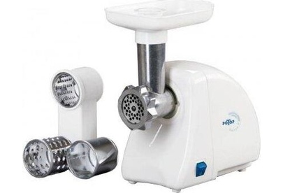 Мощность 1500Вт. Тип мясорубки шнековый. Производ-ть при пригот-и фарша не менее 35 кг/ч. Габариты: 234х150х210 мм. Комплектация: мясорубка + малая овощерезка.