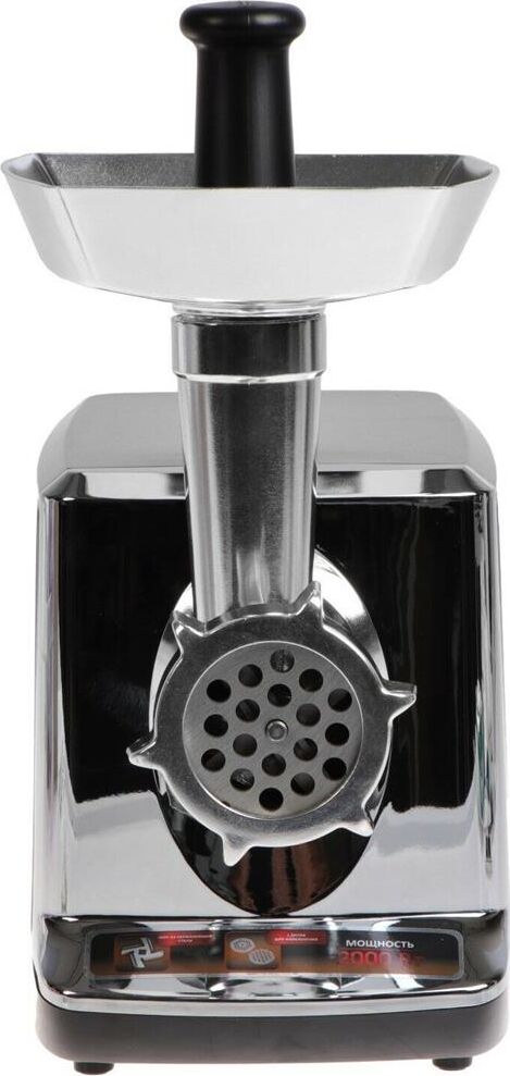 Мощность: 2000 Вт Функция реверс Материал корпуса: нержавеющая сталь с хромированной вставкой Прорезиненные ножки Материал лотка: металл Толкатель Материал шнека: металл Материал ножа: нержавеющая сталь Диски для измельчения: 5 мм и 8 мм, материал: металл Длина сетевого кабеля: 1,2 м Отключение при перегреве