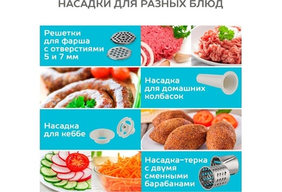 насадка-терка, насадка для приготовления колбас, насадка для шинковки, насадка для кеббе, диск для фарша