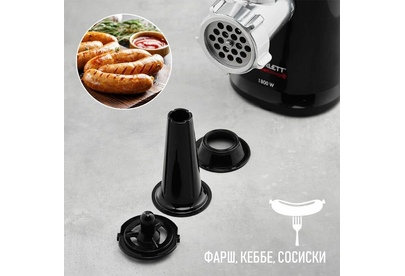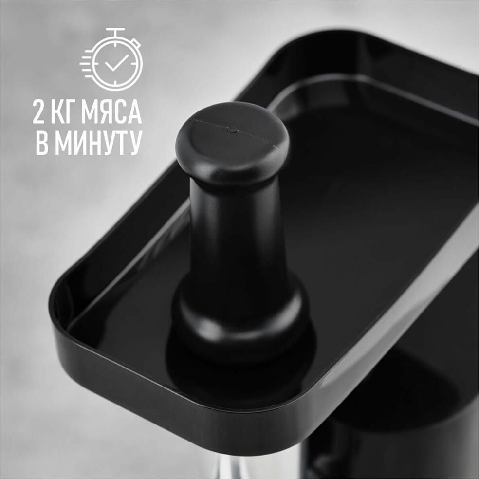 Электрическая мясорубка Тип: Без овощерезок Мощность, Вт: 1800 Принадлежность к линейке: Smart Storage Производительность кг/мин: 2 Функция реверс: Да Перфорированные диски для мяса, размер отверстий мм: 5 и 7 Защита двигателя от перегрузки: Да Металлическое соединение шнека: Да Нож из нержавеющей стали: Да Насадка кеббе: Да Насадка для приготовления домашних сосисок: Да Материал лотка для подачи мяса: Пластик Резиновые ножки для повышенной устойчивости: Да Количество решеток: 2 Длина электрошнура, м: 1 Особенности модели: Хранение диска и смотка шнура