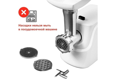 толкатель, материал лотка: пластик, не допускается мойка моторного блока, рабочей камеры, шнека, ножа и режущих дисков в посудомоечной машине