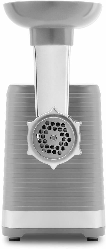 Мясорубка. Максимальная мощность: 1800 вт, Количество скоростей: 1, Номинальная мощность: 220-240 вт, Система реверса, Количество насадок для приготовления колбас: 1, Количество перфорированных дисков: 2, Максимальное время непрерывной работы: 5, Материал корпуса: пластик, Материал лотка: пластик, Насадка для кеббе, Насадка для приготовления колбас, Перфорированный диск для фарша, Прорезиненные ножки, Длина сетевого шнура: 110 см, Цвет: Серый