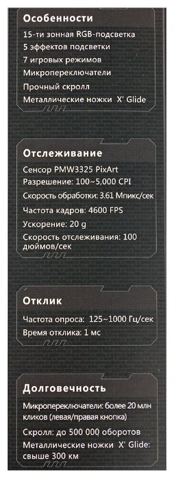 Прочные металлические ножки XGlide прошли тест скольжения в 300 км без потери качества. Время отклика: 0.2 мс. Встроенная память 160 Кб.
