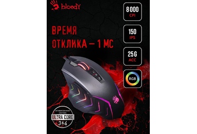 Мышь игровая, проводная, интерфейс USB 3.0, тип подсветки - RGB, количество кнопок - 9, колесо прокрутки, изменяемое разрешение - 1000/2000/3000/4000/5000 dpi, металлические ножки, специальное покрытие корпуса - soft rubber grips на боковых поверхностях, частота опроса: 125 – 1000 Гц/сек., длина кабеля - 1,8 м,