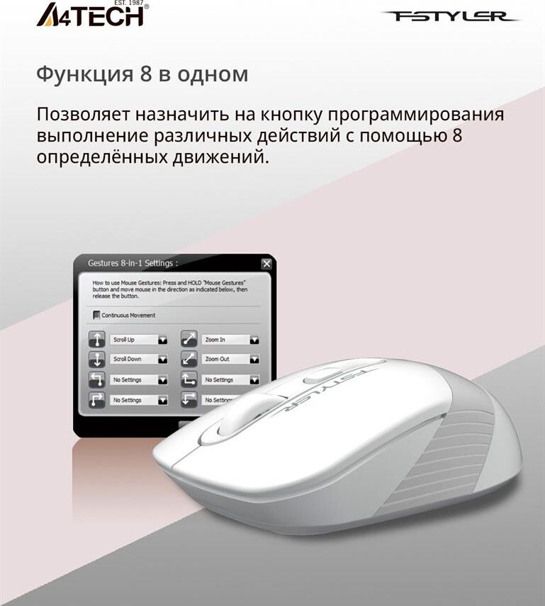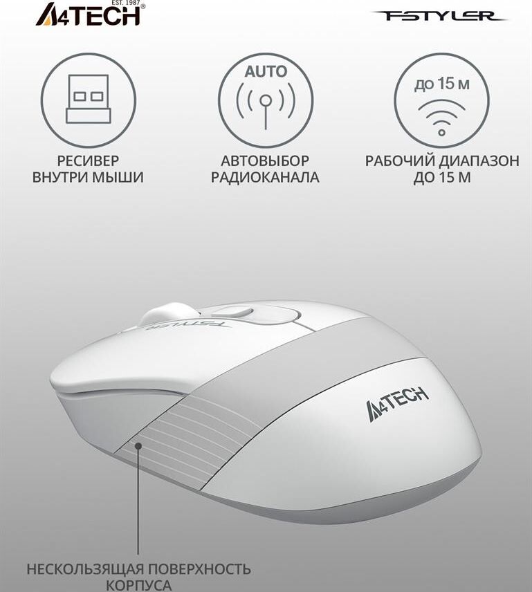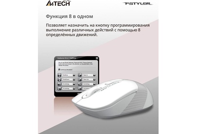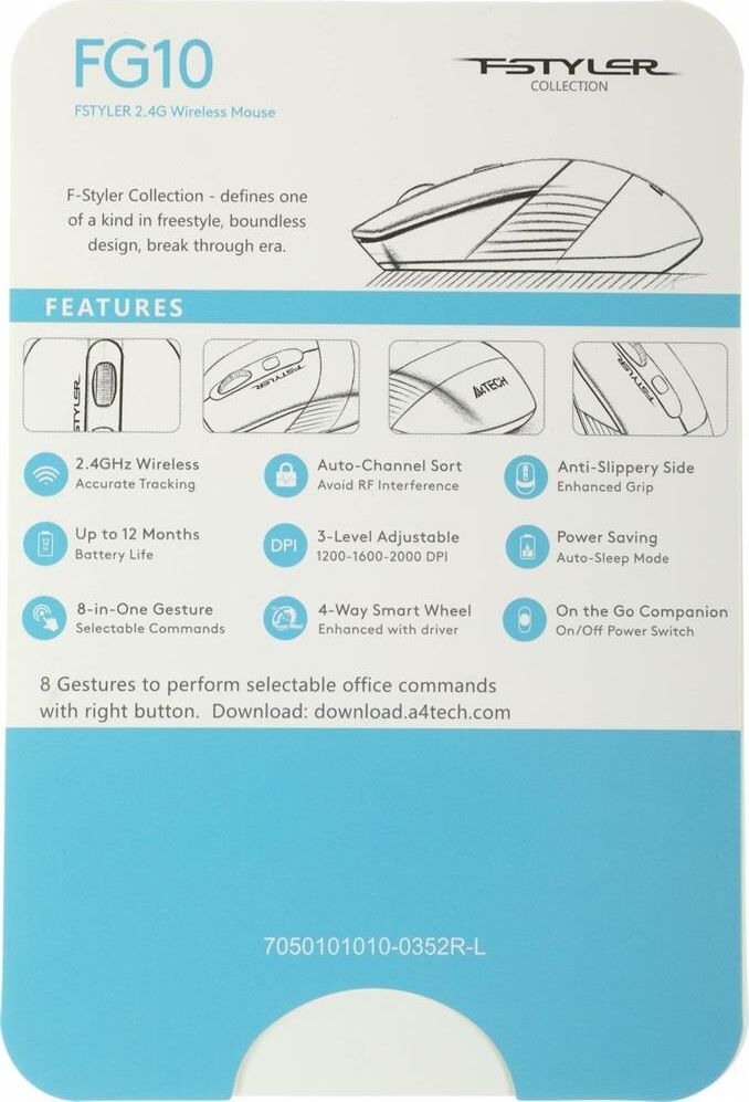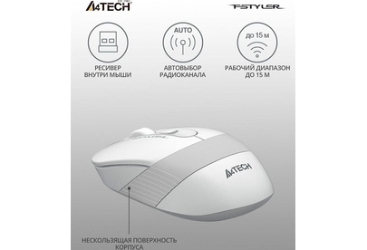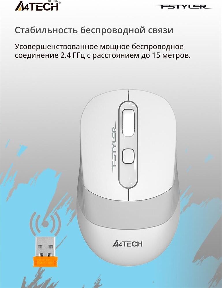 Мышь беспроводная A4TECH FStyler FG10 белый/серый оптическая (2000dpi) беспроводная USB