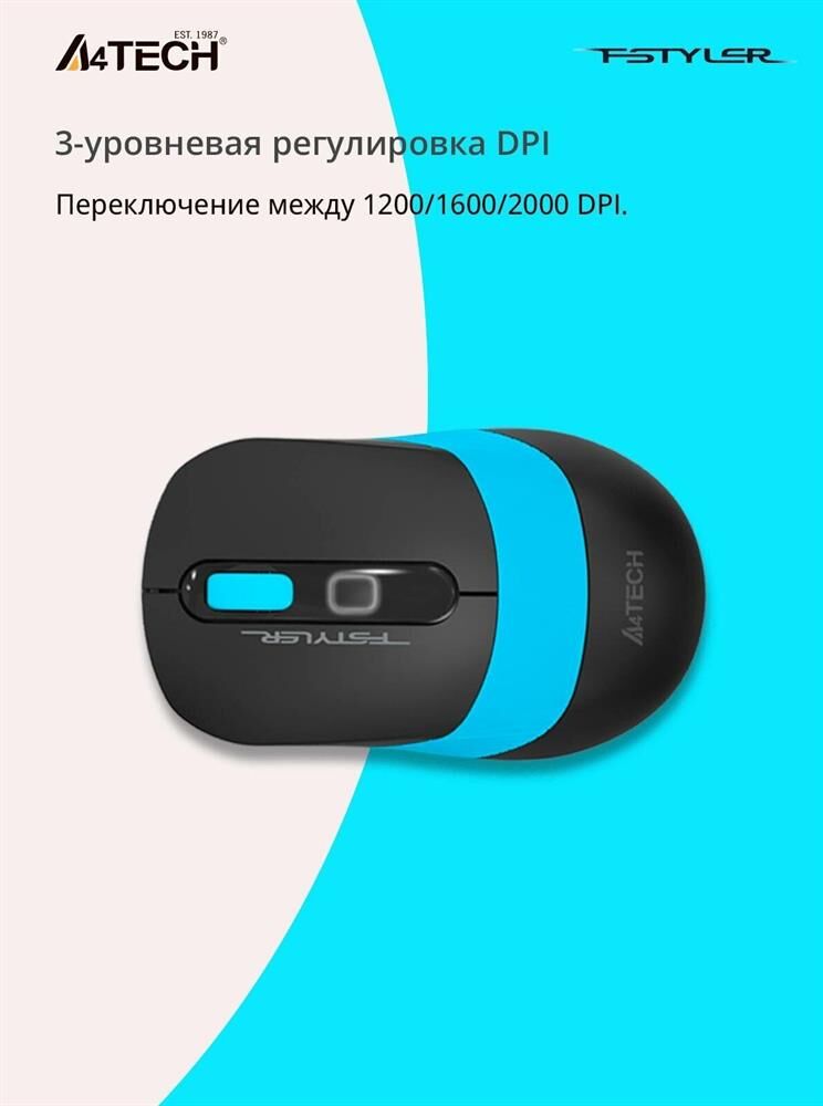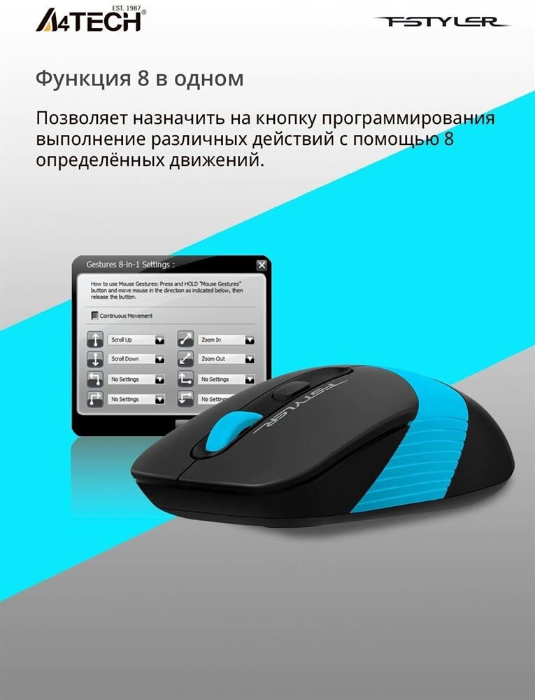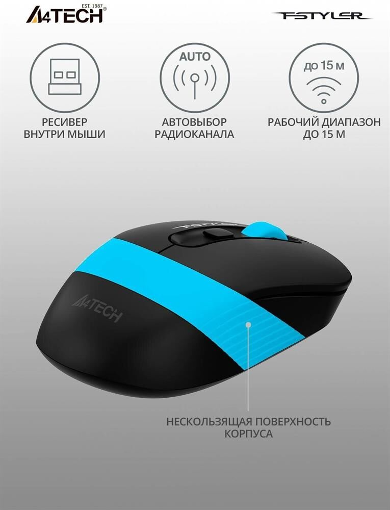 Мышь беспроводная A4TECH Fstyler FG10S черный и синий