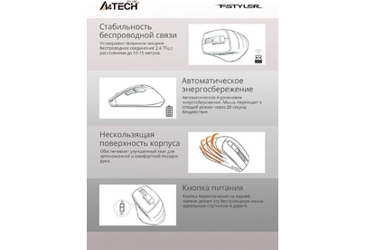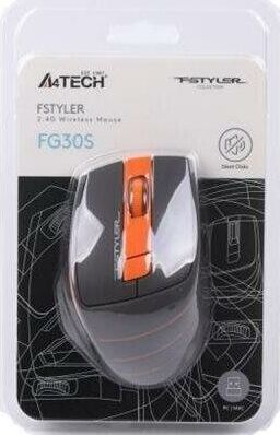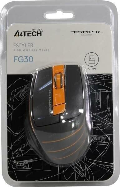Мышь беспроводная A4TECH Fstyler FG30 серый/оранжевый оптическая (2000dpi) беспроводная USB