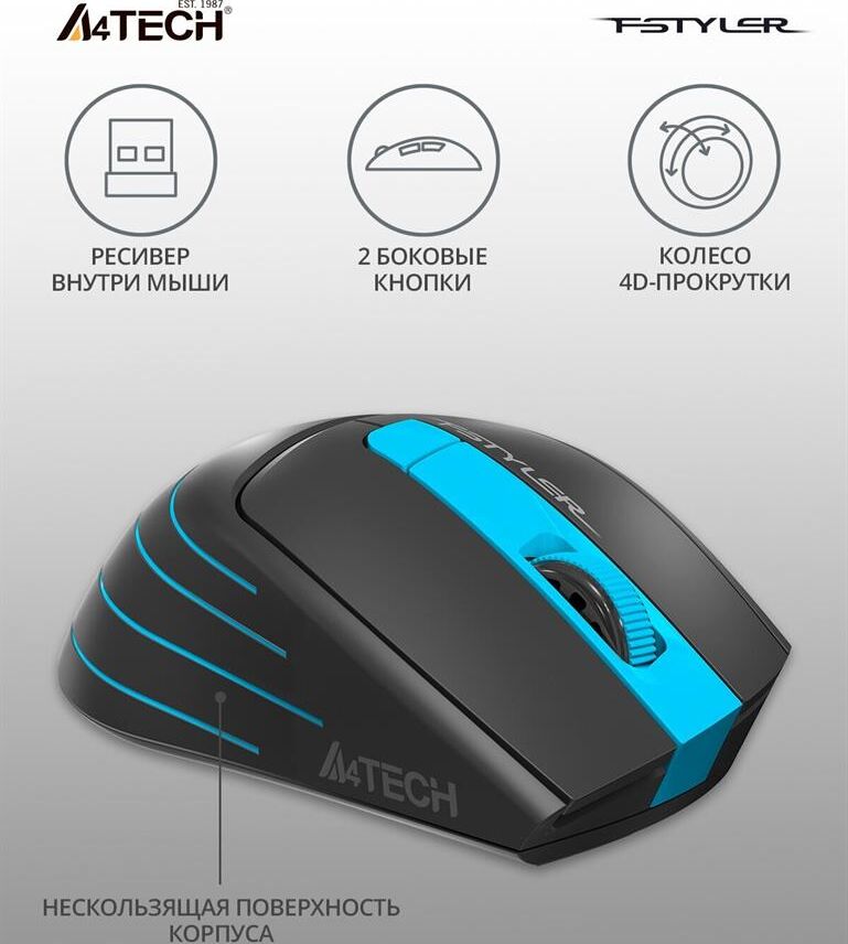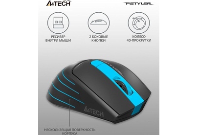 Мышь беспроводная A4TECH FStyler FG30 серый/синий оптическая (2000dpi) беспроводная USB