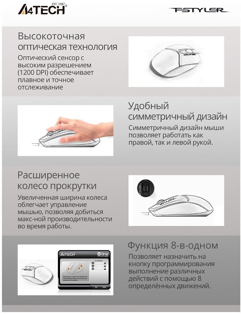 Мышь беспроводная A4TECH Fstyler FM12 белый