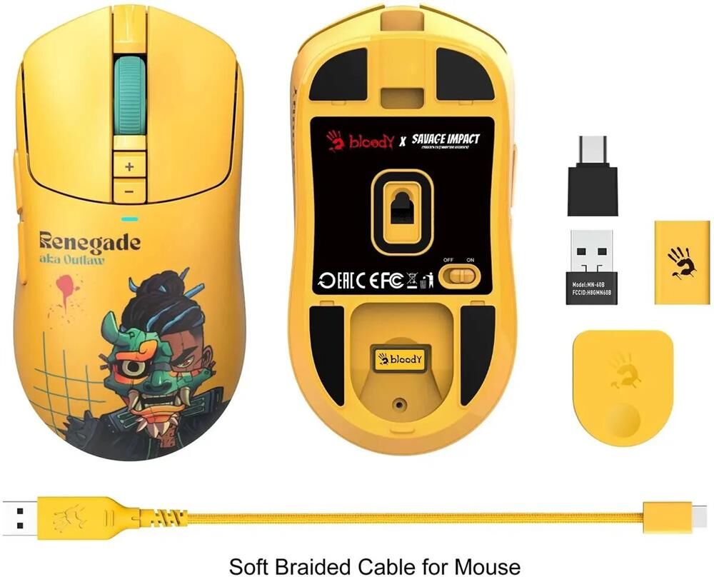 Мышь беспроводная A4TECH Мышь Bloody R72 Ultra желтый оптическая 20000dpi беспров. USB-C 6but