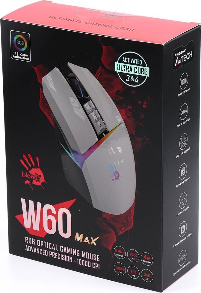 Мышь беспроводная A4TECH Мышь Bloody W60 Max белый оптическая 10000dpi USB 10but (W60 MAX (PANDA WHITE))
