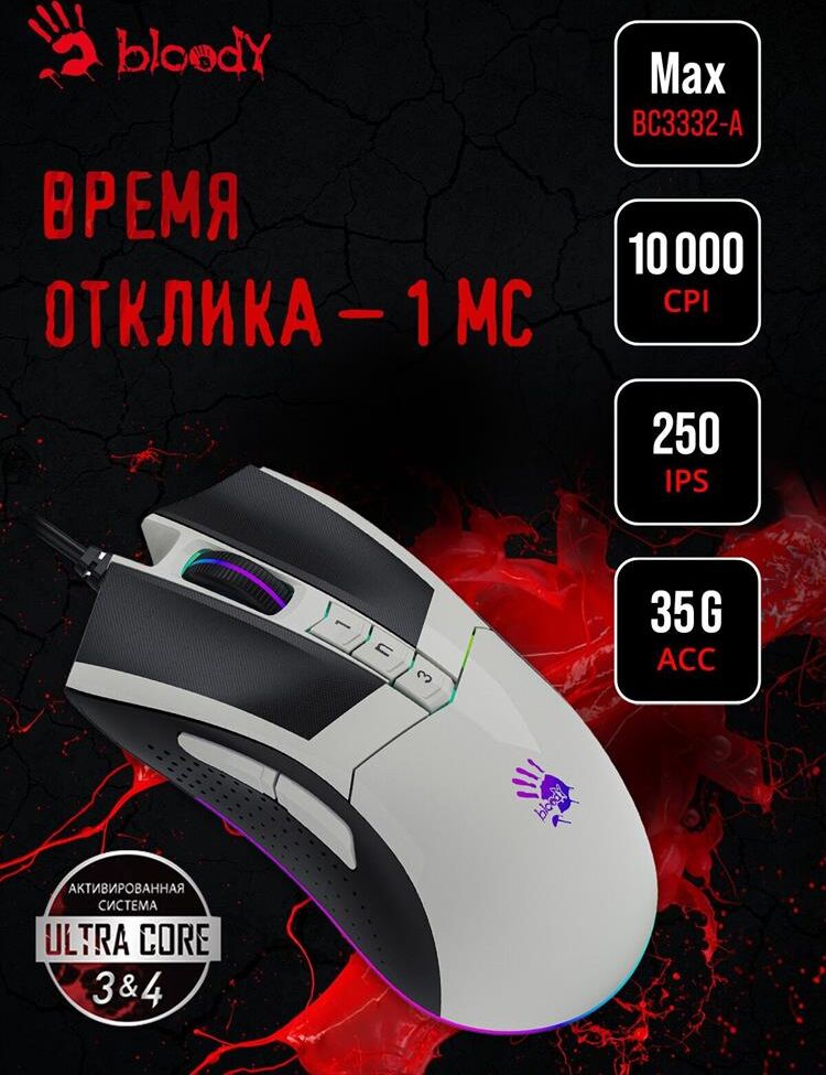 Мышь беспроводная A4TECH Мышь Bloody W90 Max черный оптическая 10000dpi USB 7but (W90 MAX ( STONE BLACK))