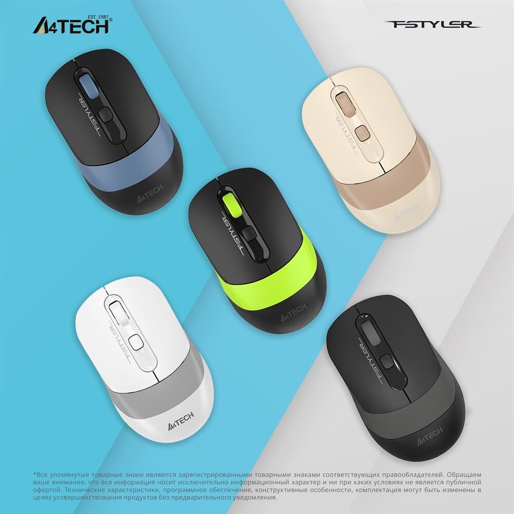 Мышь беспроводная A4TECH Мышь Fstyler FB10CS белый/серый оптическая 2000dpi silent беспров. BT/Radio USB 4but (FB10CS