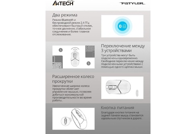 Мышь беспроводная A4TECH Мышь Fstyler FB12 белый оптическая 1200dpi беспров. BT/Radio USB 3but (FB12 WHITE)