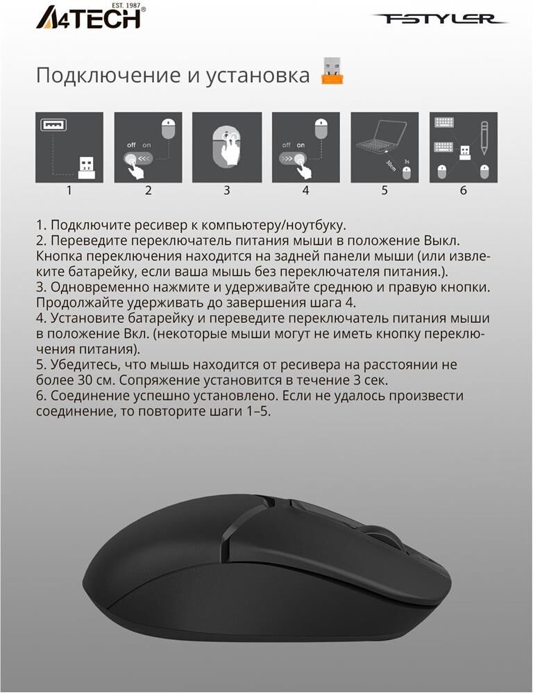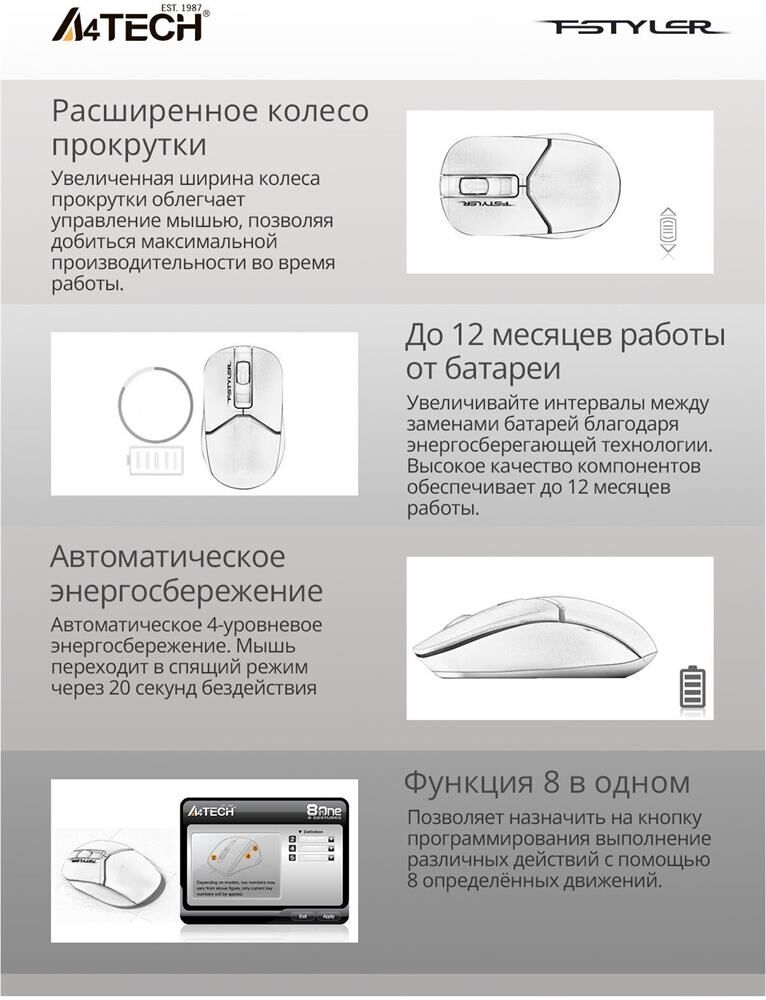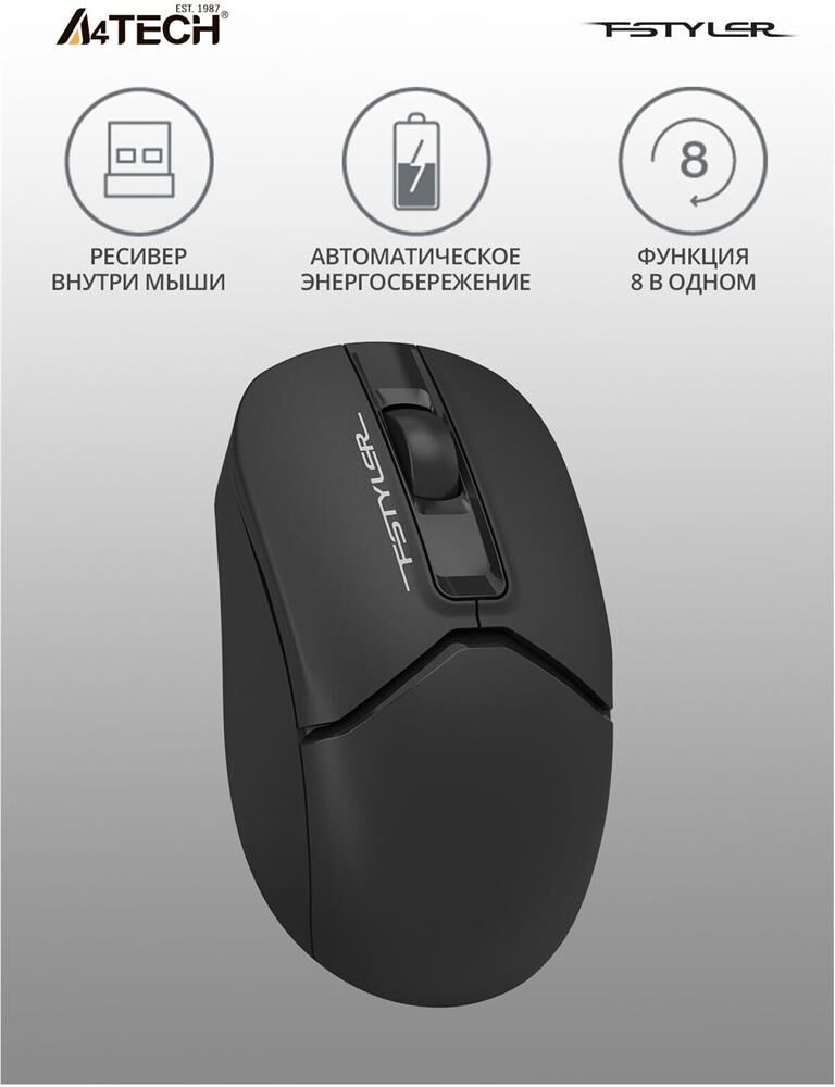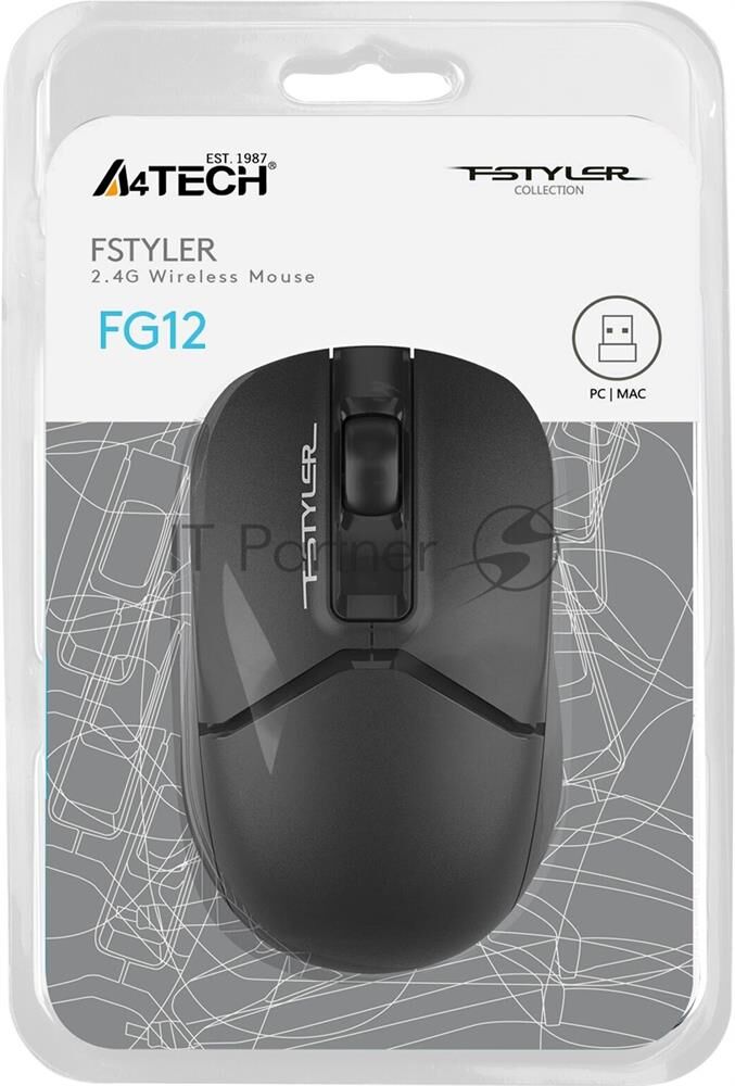 Мышь беспроводная A4TECH Мышь Fstyler FG12 черный оптическая (1200dpi) беспроводная USB (3but)
