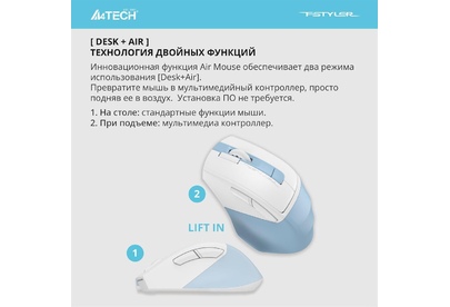 Мышь беспроводная A4TECH Мышь Fstyler FG45CS Air2 голубой/белый оптическая 2000dpi silent беспров. USB для ноутбука 7b