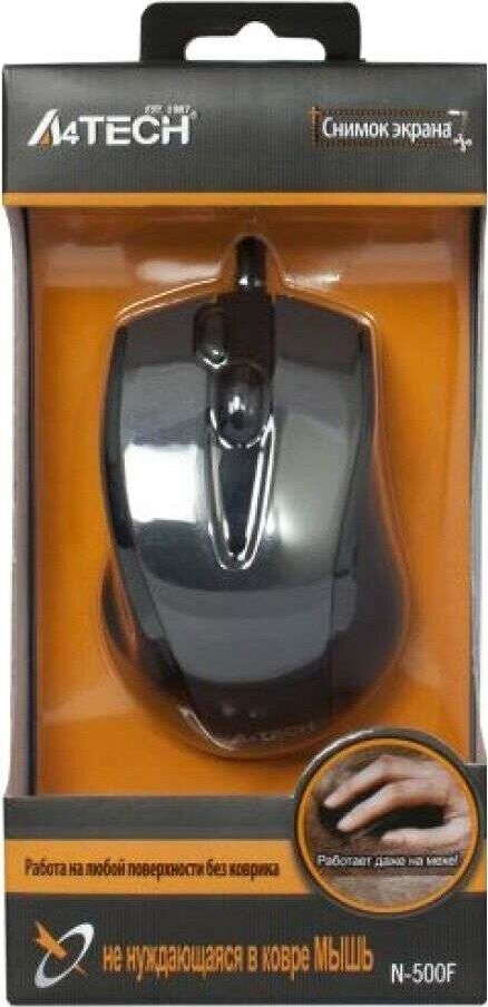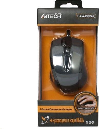 Работа на любой поверхности по технологии V-Track – главное преимущество мыши A4TECH V-Track Padless N-500F. Вы сможете комфортно управлять ю, например, лежа в постели. Эта модель средних размеров с эргономичным дизайном и стандартным расположением клавиш будет удобной для большинства пользователей. Кнопка двойного клика 2Х пригодится в играх или во время работы с данными. A4TECH V-Track Padless N-500F имеет длинный провод, позволяющий вам расположиться напротив монитора на комфортном расстоянии. USB-интерфейс устройства делает его подключение к компьютеру предельно простым. Настройка мыши происходит автоматически, без каких-либо действий со стороны пользователя. Модель является универсальной, она совместима как настольными, так и портативными компьютерами.